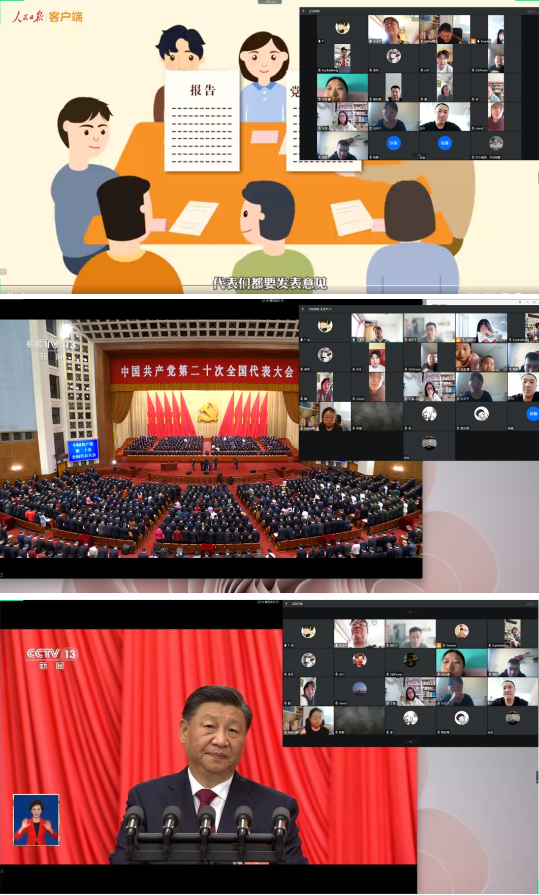 上午9:30分,公司员工已全部进入腾讯会议室,党支部首先播放了学习视频《中国共产党党员代表大会是如何召开的》。通过学习,每一位员工都对党代会相关知识有了深刻了解。大家带着对新知识的理解与喜悦迎来了党的二十大胜利召开。