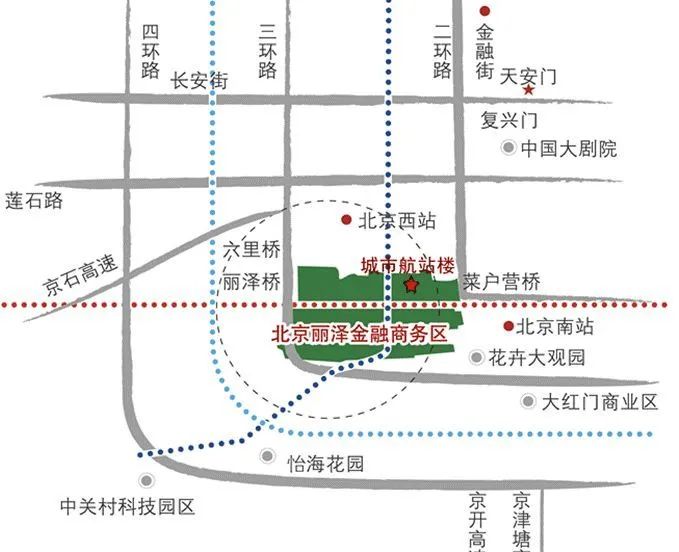 该综合体与北京大兴国际机场、北京西站、北京南站、丰台火车站形成轨道直连,共同建成“轨道上的京津冀”重要节点。将来,旅客在丽泽金融商务区内即可完成值机、行李托运等环节,仅需20分钟即可轻装到达北京大兴国际机场,大大缩短了从丰台飞向全国乃至世界的时间成本,成为丽泽金融商务区打造具有国际影响力金融中心的新引擎,也为丰台走向国际化打开了新窗口。