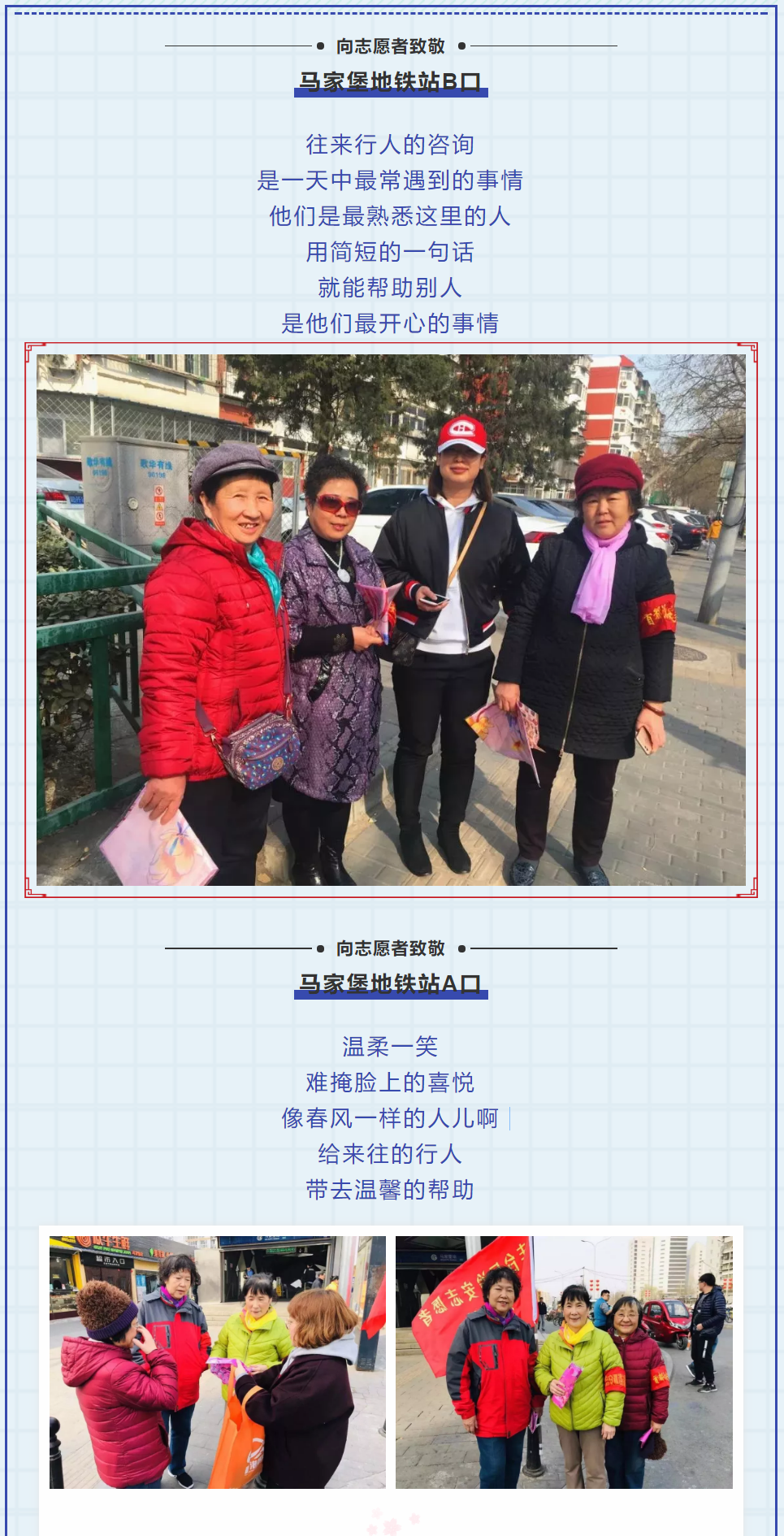 其实,她们的付出才是最应该感谢的,是他们的志愿精神,给我们所居住的环境带来了平安与和谐,是3月天中最美的一道风景线。