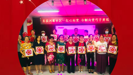 2021年7月21日,东滨河路社区组织开展了以“红心向党、巾帼向党”为主题的巧手剪纸活动。
