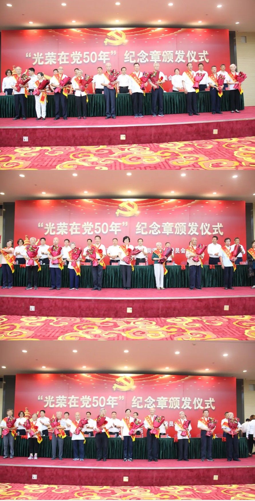 街道领导干部、机关全体党员、党龄满50年的党员代表、社区两委班子成员及楼宇党委干部共300余人参加了仪式。仪式由街道工委副书记、办事处主任王峰主持。
