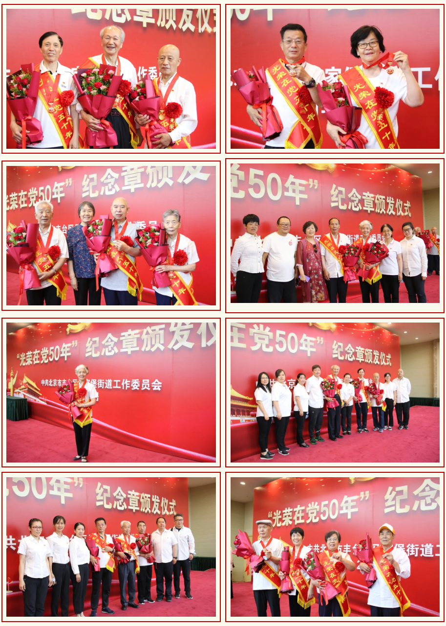仪式分为四个议程:向老党员颁发“光荣在党50年”纪念章、工委副书记赵军带领重温入党誓词、老党员代表贝长河、郭尚越发言,最后,马家堡街道工委书记王涛讲话并提出四点意见。