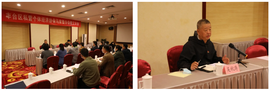 丰台区马家堡街道办事处副主任、党工委委员、武装部部长任志峰,丰台区私个协副会长兼秘书长吴秋涛等领导出席了成立大会并发言。马家堡街道市场监督管理所所长李汝河主持成立大会,介绍了分会成立筹备情况。