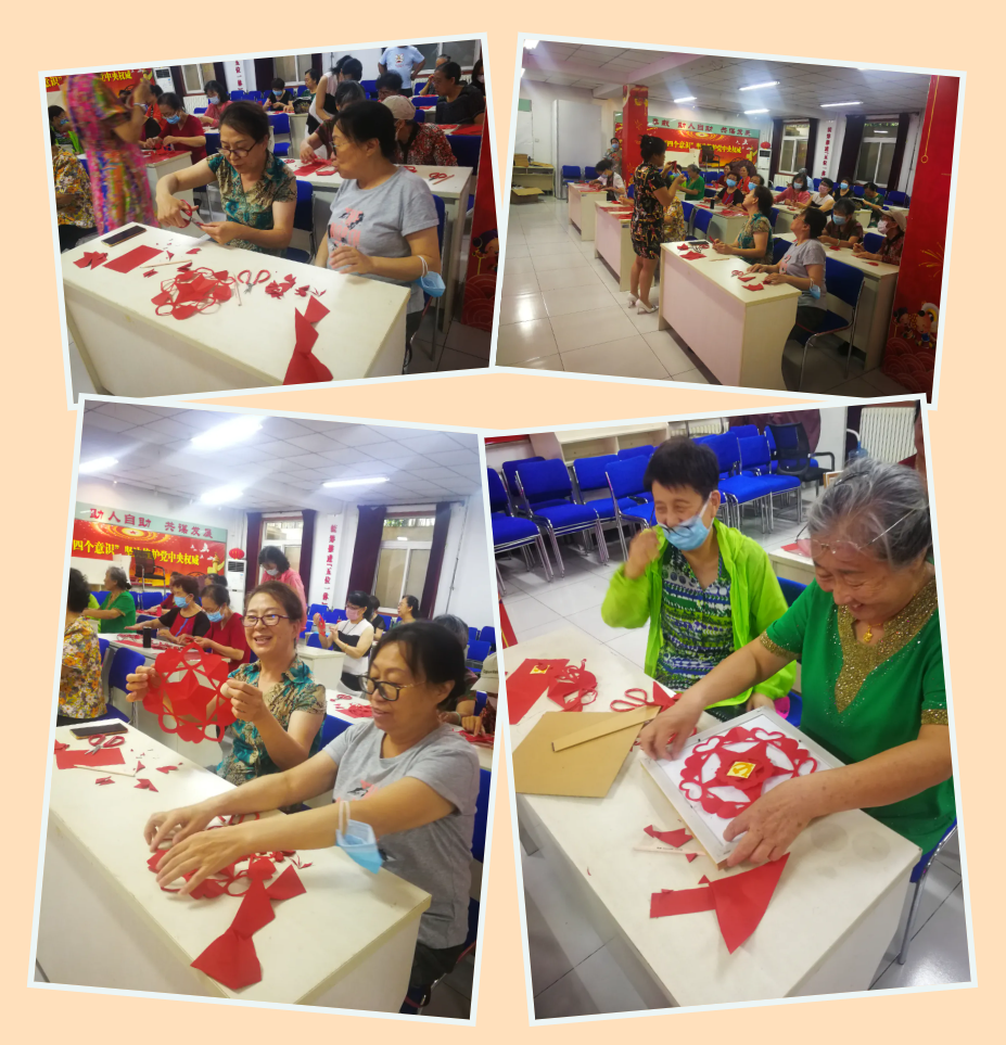 2021年7月21日,东滨河路社区组织开展了以“红心向党、巾帼向党”为主题的巧手剪纸活动。